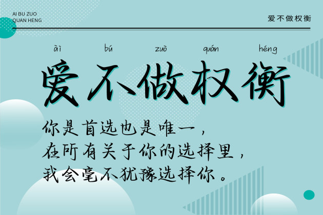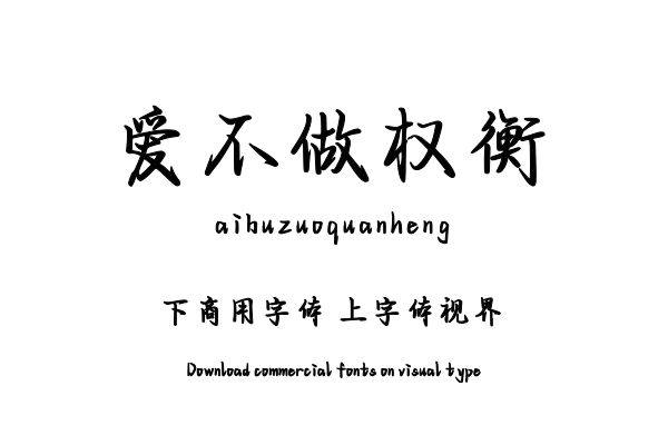 字体视界™是正版商用字体授权平台,平台已取得「爱不做权衡」字体的官方授权,并有权为您提供字体授权服务。除了「爱不做权衡」字体以外字体视界™还提供字语坊字库字库其......单字授权