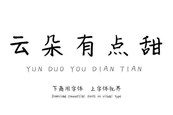 字体视界是一家专业字体授权平台,平台已取得「云朵有点甜」字体的官方代理授权,并有权为您提供字体授权服务。除了「云朵有点甜」字体以外字体视界还提供三极字库其他字体......购买须知:“下载服务费”与“字体VIP”所获得字体 仅用于个人非商用, 商用请联系付费授权。本字体为电脑用字,手机没有root权限不支持直接手机换字(手机如何root,请自行百度搜索教程)。购买前请先 了解清楚后再付款 ,字体为虚拟产品无法回收 一旦购买不支持退款。