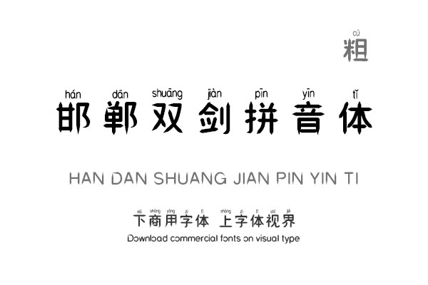 字体视界™是正版商用字体授权平台,平台已取得「邯郸双剑拼音粗体」字体的官方授权,并有权为您提供字体授权服务。除了「邯郸双剑拼音粗体」字体以外字体视界™还提供邯郸......单字授权