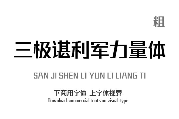 字体视界是一家专业字体授权平台,平台已取得「三极谌利军力量体 粗」字体的官方代理授权,并有权为您提供字体授权服务。除了「三极谌利军力量体 粗」字体以外字体视界还......购买须知:“下载服务费”与“字体VIP”所获得字体 仅用于个人非商用, 商用请联系付费授权。本字体为电脑用字,手机没有root权限不支持直接手机换字(手机如何root,请自行百度搜索教程)。购买前请先 了解清楚后再付款 ,字体为虚拟产品无法回收 一旦购买不支持退款。