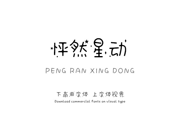 怦然星动设计灵来感源于对于夜晚思念一个人,星星元素代表着对每每想到思念的人心砰砰的跳。字体整体风格生动有趣且酷劲十足。适用于儿童类品牌广告和产品包装设计,以及社......单字授权