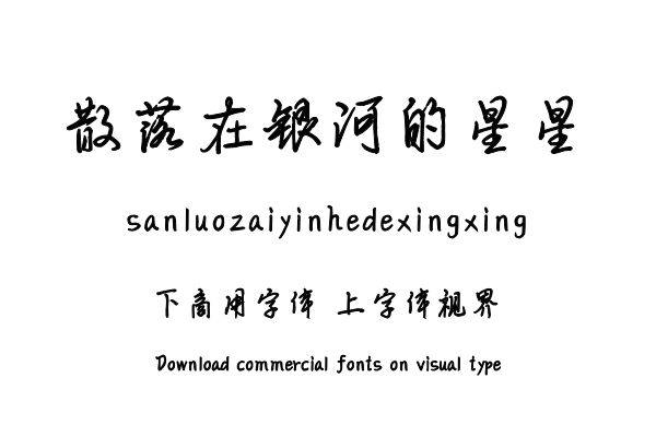 字体视界™是正版商用字体授权平台,平台已取得「散落在银河的星星」字体的官方授权,并有权为您提供字体授权服务。除了「散落在银河的星星」字体以外字体视界™还提供文道......单字授权