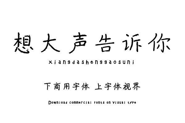 字体视界™是正版商用字体授权平台,平台已取得「想大声告诉你」字体的官方授权,并有权为您提供字体授权服务。除了「想大声告诉你」字体以外字体视界™还提供施申财字库其......单字授权