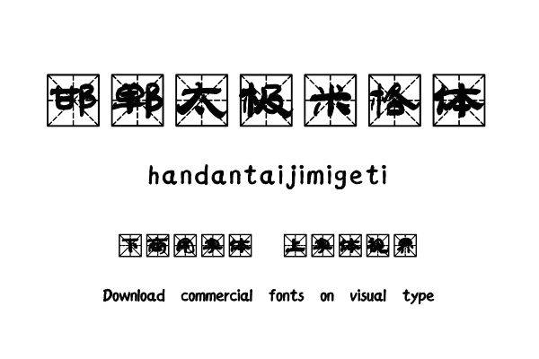 字体视界™是正版商用字体授权平台,平台已取得「邯郸太极米格体」字体的官方授权,并有权为您提供字体授权服务。除了「邯郸太极米格体」字体以外字体视界™还提供邯郸字库......单字授权