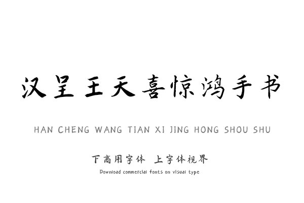 字体视界是一家专业字体授权平台,平台已取得「汉呈王天喜惊鸿手书」字体的官方代理授权,并有权为您提供字体授权服务。除了「汉呈王天喜惊鸿手书」字体以外字体视界还提供......单字授权