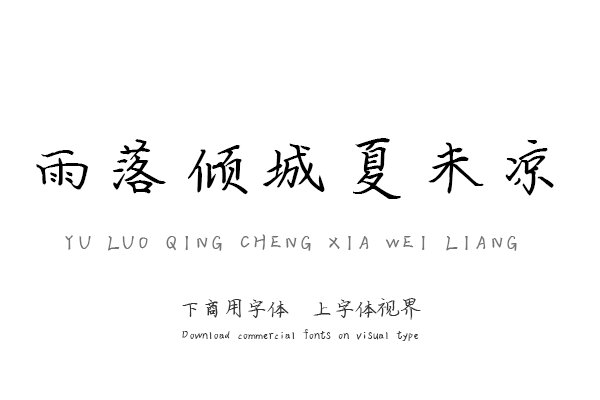 字体视界是一家专业字体授权平台,平台已取得「雨落倾城夏未凉」字体的官方代理授权,并有权为您提供字体授权服务。除了「雨落倾城夏未凉」字体以外字体视界还提供三极字库......购买须知:“下载服务费”与“字体VIP”所获得字体 仅用于个人非商用, 商用请联系付费授权。本字体为电脑用字,手机没有root权限不支持直接手机换字(手机如何root,请自行百度搜索教程)。购买前请先 了解清楚后再付款 ,字体为虚拟产品无法回收 一旦购买不支持退款。
