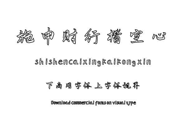 字体视界™是正版商用字体授权平台,平台已取得「施申财行楷空心」字体的官方授权,并有权为您提供字体授权服务。除了「施申财行楷空心」字体以外字体视界™还提供施申财字......单字授权