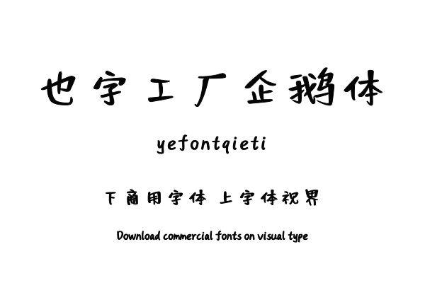 字体视界™是正版商用字体授权平台,平台已取得「也字工厂企鹅体」字体的官方授权,并有权为您提供字体授权服务。除了「也字工厂企鹅体」字体以外字体视界™还提供也字工厂......单字授权