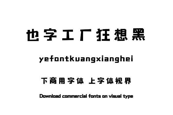 字体视界™是正版商用字体授权平台,平台已取得「也字工厂狂想黑」字体的官方授权,并有权为您提供字体授权服务。除了「也字工厂狂想黑」字体以外字体视界™还提供也字工厂......单字授权