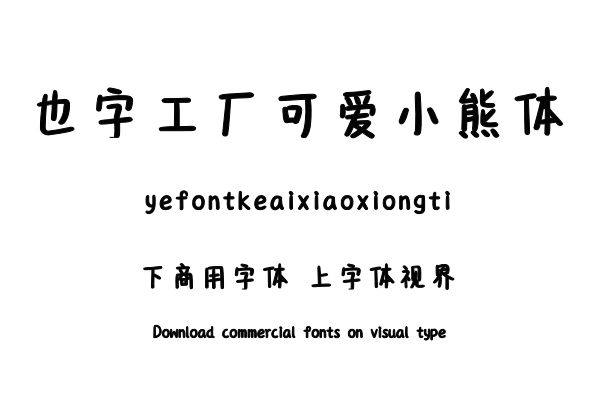 字体视界™是正版商用字体授权平台,平台已取得「也字工厂可爱小熊体」字体的官方授权,并有权为您提供字体授权服务。除了「也字工厂可爱小熊体」字体以外字体视界™还提供......单字授权