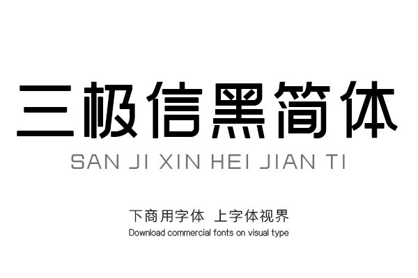 三极信黑简体是是一款几何感十足的创意字体。其笔画多以对称的手法来表现,撇、捺都有明显的几何转折,不同于书写状态的连续弧线。起笔收笔都为圆角,字体更加精致,使字体......购买须知:“下载服务费”与“字体VIP”所获得字体 仅用于个人非商用, 商用请联系付费授权。本字体为电脑用字,手机没有root权限不支持直接手机换字(手机如何root,请自行百度搜索教程)。购买前请先 了解清楚后再付款 ,字体为虚拟产品无法回收 一旦购买不支持退款。