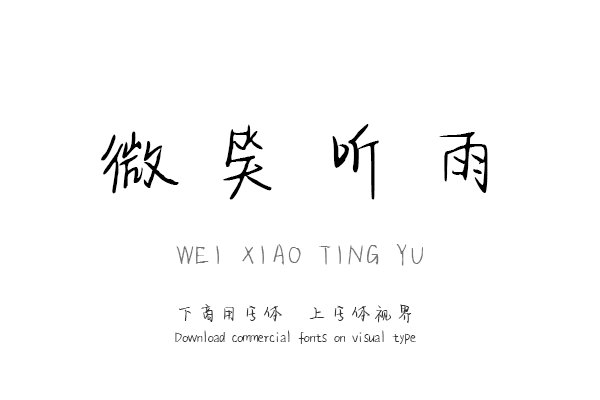 字体视界是一家专业字体授权平台,平台已取得「微笑听雨」字体的官方代理授权,并有权为您提供字体授权服务。除了「微笑听雨」字体以外字体视界还提供三极字库其他字体供......购买须知:“下载服务费”与“字体VIP”所获得字体 仅用于个人非商用, 商用请联系付费授权。本字体为电脑用字,手机没有root权限不支持直接手机换字(手机如何root,请自行百度搜索教程)。购买前请先 了解清楚后再付款 ,字体为虚拟产品无法回收 一旦购买不支持退款。