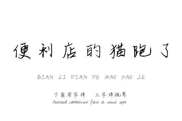 字体视界是一家专业字体授权平台,平台已取得「便利店的猫跑了」字体的官方代理授权,并有权为您提供字体授权服务。除了「便利店的猫跑了」字体以外字体视界还提供三极字库......购买须知:“下载服务费”与“字体VIP”所获得字体 仅用于个人非商用, 商用请联系付费授权。本字体为电脑用字,手机没有root权限不支持直接手机换字(手机如何root,请自行百度搜索教程)。购买前请先 了解清楚后再付款 ,字体为虚拟产品无法回收 一旦购买不支持退款。