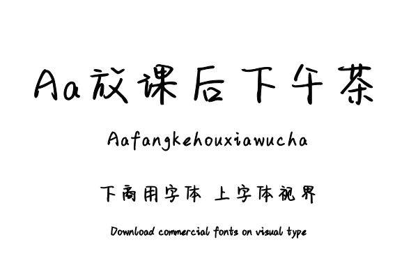 Aa放课后下午茶是一款手写体,书写灵活、笔画自然。字形优雅洒脱,是一款风格独特的手写字体。作为标题正文均可,适用场景广泛。购买须知:“下载服务费”与“字体VIP”所获得字体 仅用于个人非商用, 商用请联系付费授权。本字体为电脑用字,手机没有root权限不支持直接手机换字(手机如何root,请自行百度搜索教程)。购买前请先 了解清楚后再付款 ,字体为虚拟产品无法回收 一旦购买不支持退款。