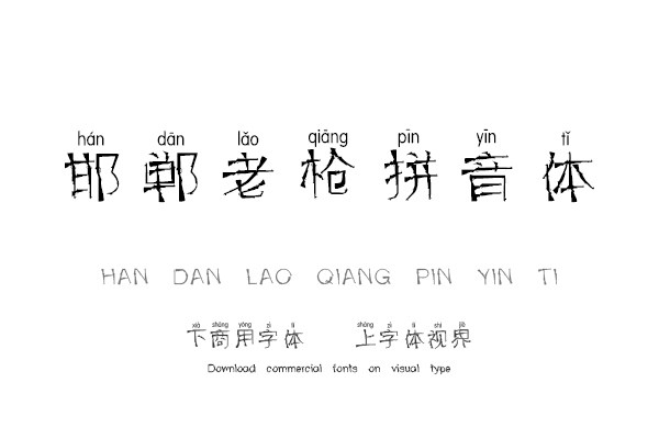 字体视界™是正版商用字体授权平台,平台已取得「邯郸老枪拼音体」字体的官方授权,并有权为您提供字体授权服务。除了「邯郸老枪拼音体」字体以外字体视界™还提供邯郸字库......单字授权