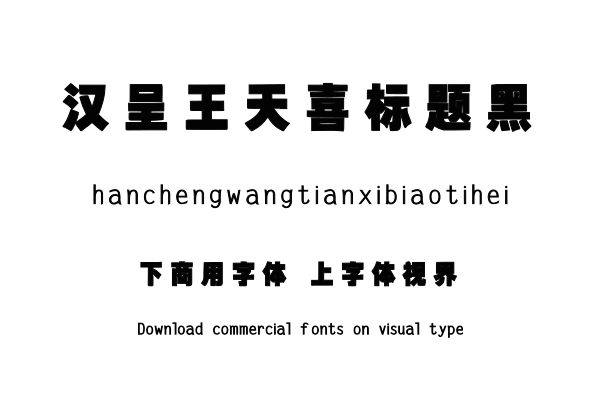 字体视界™是正版商用字体授权平台,平台已取得「汉呈王天喜标题黑」字体的官方授权,并有权为您提供字体授权服务。除了「汉呈王天喜标题黑」字体以外字体视界™还提供汉呈......单字授权
