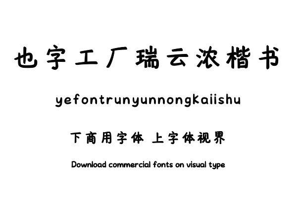 字体视界™是正版商用字体授权平台,平台已取得「也字工厂瑞云浓楷书」字体的官方授权,并有权为您提供字体授权服务。除了「也字工厂瑞云浓楷书」字体以外字体视界™还提供......单字授权