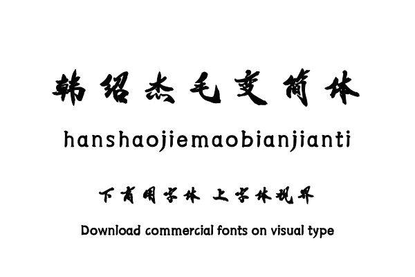 字体视界™是正版商用字体授权平台,平台已取得「韩绍杰毛变简体」字体的官方授权,并有权为您提供字体授权服务。除了「韩绍杰毛变简体」字体以外字体视界™还提供邯郸字库......单字授权