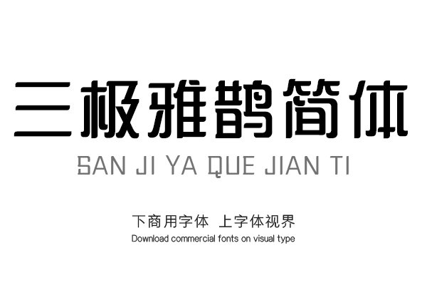 三极雅鹊简体,这款字体的起笔、收笔和转折处综合了字体与鸟类的特征,形成鹊首圆弧的字形特点,典雅灵秀,活灵活现,极富趣味感,让人不禁喜上眉梢。可广泛用于书刊、广告......购买须知:“下载服务费”与“字体VIP”所获得字体 仅用于个人非商用, 商用请联系付费授权。本字体为电脑用字,手机没有root权限不支持直接手机换字(手机如何root,请自行百度搜索教程)。购买前请先 了解清楚后再付款 ,字体为虚拟产品无法回收 一旦购买不支持退款。
