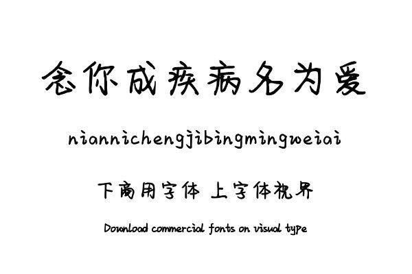 字体视界是一家专业字体授权平台,平台已取得「念你成疾病名为爱」字体的官方代理授权,并有权为您提供字体授权服务。除了「念你成疾病名为爱」字体以外字体视界还提供文道......单字授权