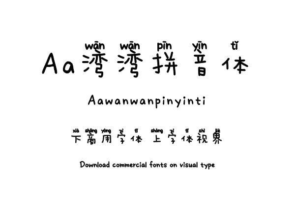 以手写体“Aa湾湾”为打底字的拼音字体,创意性与实用性并存,适用场景广泛。购买须知:“下载服务费”与“字体VIP”所获得字体 仅用于个人非商用, 商用请联系付费授权。本字体为电脑用字,手机没有root权限不支持直接手机换字(手机如何root,请自行百度搜索教程)。购买前请先 了解清楚后再付款 ,字体为虚拟产品无法回收 一旦购买不支持退款。
