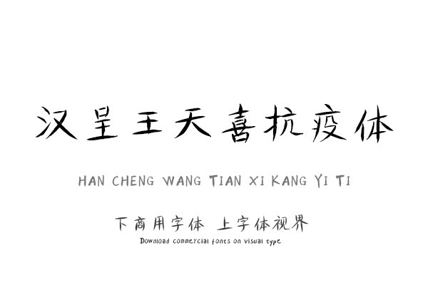 字体视界是一家专业字体授权平台,平台已取得「汉呈王天喜抗疫体」字体的官方代理授权,并有权为您提供字体授权服务。除了「汉呈王天喜抗疫体」字体以外字体视界还提供汉呈......单字授权