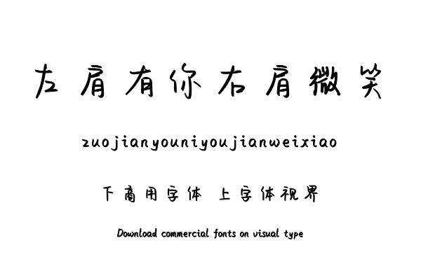 字体视界™是正版商用字体授权平台,平台已取得「左肩有你右肩微笑」字体的官方授权,并有权为您提供字体授权服务。除了「左肩有你右肩微笑」字体以外字体视界™还提供文道......单字授权