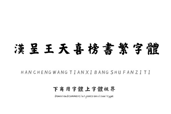 字体视界是一家专业字体授权平台,平台已取得「汉呈王天喜榜书繁字体」字体的官方代理授权,并有权为您提供字体授权服务。除了「汉呈王天喜榜书繁字体」字体以外字体视界......单字授权