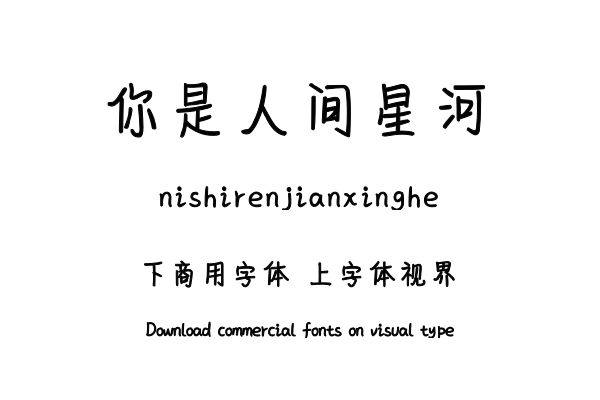 字体视界是一家专业字体授权平台,平台已取得「你是人间星河」字体的官方代理授权,并有权为您提供字体授权服务。除了「你是人间星河」字体以外字体视界还提供文道字库其他......单字授权
