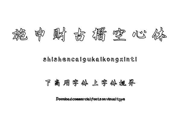 字体视界™是正版商用字体授权平台,平台已取得「施申财古楷空心体」字体的官方授权,并有权为您提供字体授权服务。除了「施申财古楷空心体」字体以外字体视界™还提供施申......单字授权