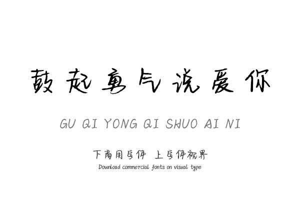 字体视界是一家专业字体授权平台,平台已取得「鼓起勇气说爱你」字体的官方代理授权,并有权为您提供字体授权服务。除了「鼓起勇气说爱你」字体以外字体视界还提供文道字库......单字授权