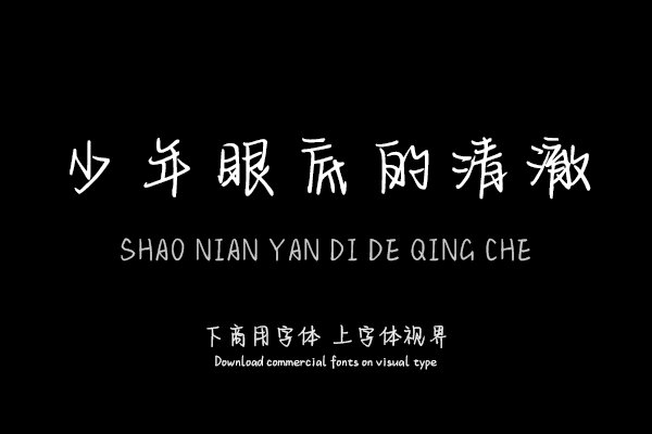 字体视界是一家专业字体授权平台,平台已取得「少年眼底的清澈」字体的官方代理授权,并有权为您提供字体授权服务。除了「少年眼底的清澈」字体以外字体视界还提供字语坊其......单字授权