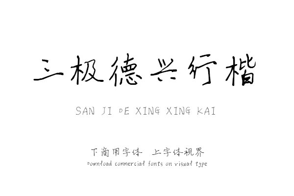 字体视界是一家专业字体授权平台,平台已取得「三极德兴行楷」字体的官方代理授权,并有权为您提供字体授权服务。除了「三极德兴行楷」字体以外字体视界还提供三极字库其他......购买须知:“下载服务费”与“字体VIP”所获得字体 仅用于个人非商用, 商用请联系付费授权。本字体为电脑用字,手机没有root权限不支持直接手机换字(手机如何root,请自行百度搜索教程)。购买前请先 了解清楚后再付款 ,字体为虚拟产品无法回收 一旦购买不支持退款。