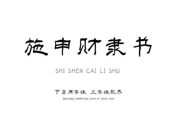 字体视界是一家专业字体授权平台,平台已取得「汉呈施申财隶书字体」字体的官方代理授权,并有权为您提供字体授权服务。除了「汉呈施申财隶书字体」字体以外字体视界还提供......单字授权