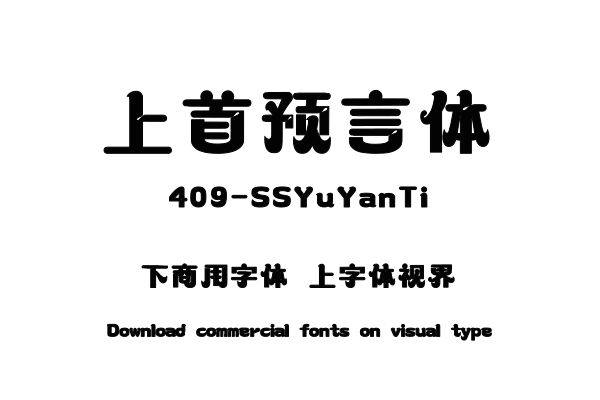 No.409-上首预言体.:来自字体视界,由字体视界负责对外发布和商业授权服务。购买须知:“下载服务费”与“字体VIP”所获得字体 仅用于个人非商用, 商用请联系付费授权。本字体为电脑用字,手机没有root权限不支持直接手机换字(手机如何root,请自行百度搜索教程)。购买前请先 了解清楚后再付款 ,字体为虚拟产品无法回收 一旦购买不支持退款。