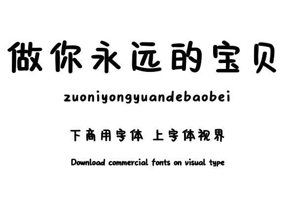 字体视界™是正版商用字体授权平台,平台已取得「做你永远的宝贝」字体的官方授权,并有权为您提供字体授权服务。除了「做你永远的宝贝」字体以外字体视界™还提供文道字库......单字授权