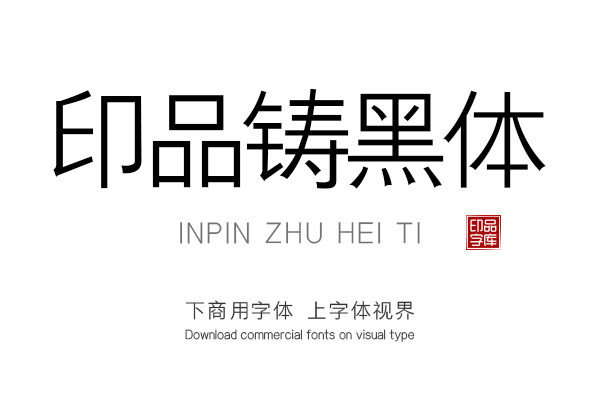 印品铸黑体折笔处采用了书法中的顿笔的笔法,笔画呈起笔点细,落笔粗的微喇叭口状,流畅弧线,延续了传统字体的笔法。这款字体整体重心略偏下,中宮稍紧,字面稍小,结构明朗清晰,易于阅读且有较好的辨识度和视觉效果。印品铸黑体整体呈现出清秀俊美,笔画简洁明快,有较好的的阅读感。这是一款完胜系统风的黑体,可用于标题、正文、LOGO、广告、印刷、屏显、印章等场景。