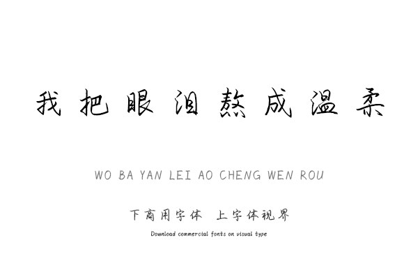 字体视界™是正版商用字体授权平台,平台已取得「我把眼泪熬成温柔」字体的官方授权,并有权为您提供字体授权服务。除了「我把眼泪熬成温柔」字体以外字体视界™还提供文道......单字授权
