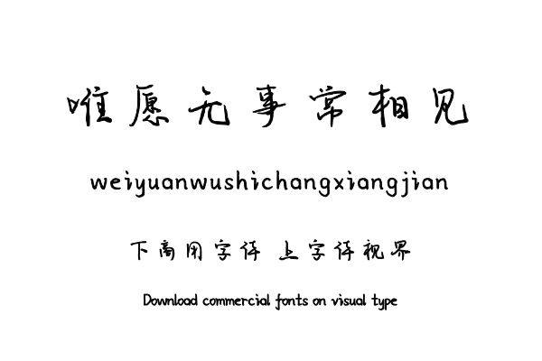 字体视界™是正版商用字体授权平台,平台已取得「唯愿无事常相见」字体的官方授权,并有权为您提供字体授权服务。除了「唯愿无事常相见」字体以外字体视界™还提供文道字库......单字授权