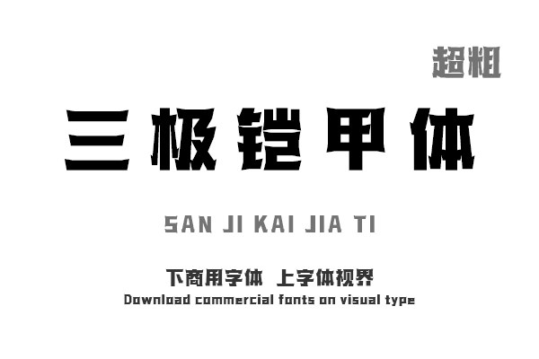 字体视界™是正版商用字体授权平台,平台已取得「三极铠甲体 超粗」字体的官方授权,并有权为您提供字体授权服务。除了「三极铠甲体 超粗」字体以外字体视界™还提供三极......购买须知:“下载服务费”与“字体VIP”所获得字体 仅用于个人非商用, 商用请联系付费授权。本字体为电脑用字,手机没有root权限不支持直接手机换字(手机如何root,请自行百度搜索教程)。购买前请先 了解清楚后再付款 ,字体为虚拟产品无法回收 一旦购买不支持退款。