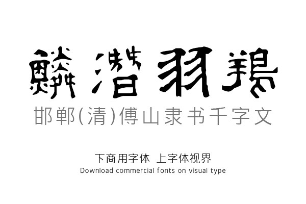 字体视界是一家专业字体授权平台,平台已取得「邯郸(清)傅山隶书千字文」字体的官方代理授权,并有权为您提供字体授权服务。除了「邯郸(清)傅山隶书千字文」字体以外字......单字授权