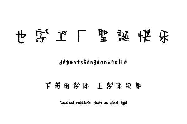 字体视界™是正版商用字体授权平台,平台已取得「也字工厂圣诞快乐」字体的官方授权,并有权为您提供字体授权服务。除了「也字工厂圣诞快乐」字体以外字体视界™还提供也字......单字授权