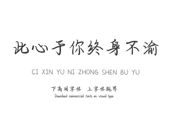 字体视界是一家专业字体授权平台,平台已取得「此心于你终身不渝」字体的官方代理授权,并有权为您提供字体授权服务。除了「此心于你终身不渝」字体以外字体视界还提供文道......单字授权