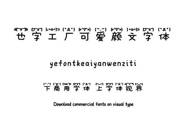字体视界™是正版商用字体授权平台,平台已取得「也字工厂可爱颜文字体」字体的官方授权,并有权为您提供字体授权服务。除了「也字工厂可爱颜文字体」字体以外字体视界™还......单字授权