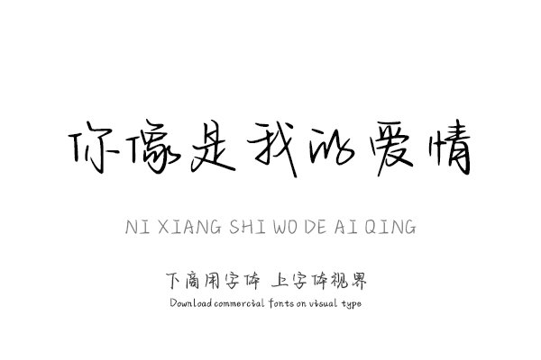 字体视界是一家专业字体授权平台,平台已取得「你像是我的爱情」字体的官方代理授权,并有权为您提供字体授权服务。除了「你像是我的爱情」字体以外字体视界还提供字语坊其......单字授权