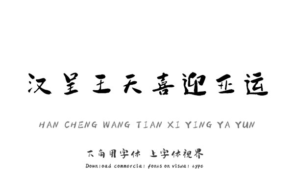 字体视界是一家专业字体授权平台,平台已取得「汉呈王天喜迎亚运」字体的官方代理授权,并有权为您提供字体授权服务。除了「汉呈王天喜迎亚运」字体以外字体视界还提供汉呈......单字授权