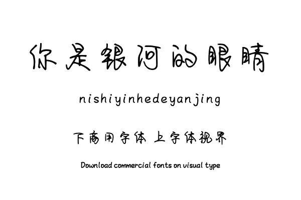 字体视界是一家专业字体授权平台,平台已取得「你是银河的眼睛」字体的官方代理授权,并有权为您提供字体授权服务。除了「你是银河的眼睛」字体以外字体视界还提供字语坊其......单字授权