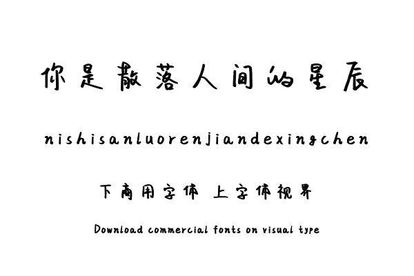 字体视界是一家专业字体授权平台,平台已取得「你是散落人间的星辰」字体的官方代理授权,并有权为您提供字体授权服务。除了「你是散落人间的星辰」字体以外字体视界还提供......单字授权