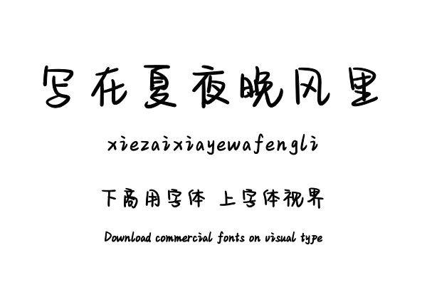 字体视界™是正版商用字体授权平台,平台已取得「写在夏夜晚风里」字体的官方授权,并有权为您提供字体授权服务。除了「写在夏夜晚风里」字体以外字体视界™还提供文道字库......单字授权