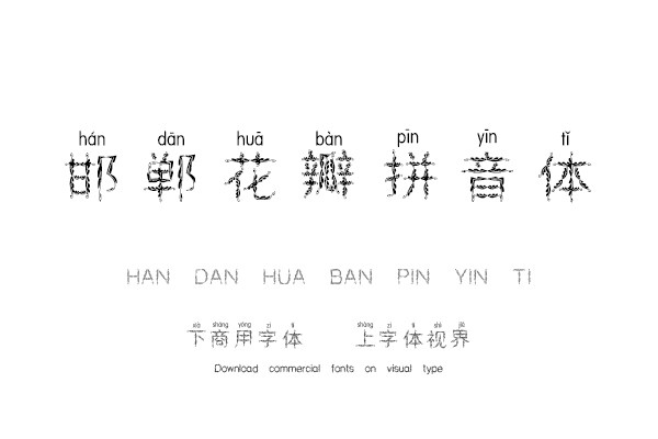 字体视界™是正版商用字体授权平台,平台已取得「邯郸花瓣拼音体体」字体的官方授权,并有权为您提供字体授权服务。除了「邯郸花瓣拼音体」字体以外字体视界™还提供邯郸字......单字授权